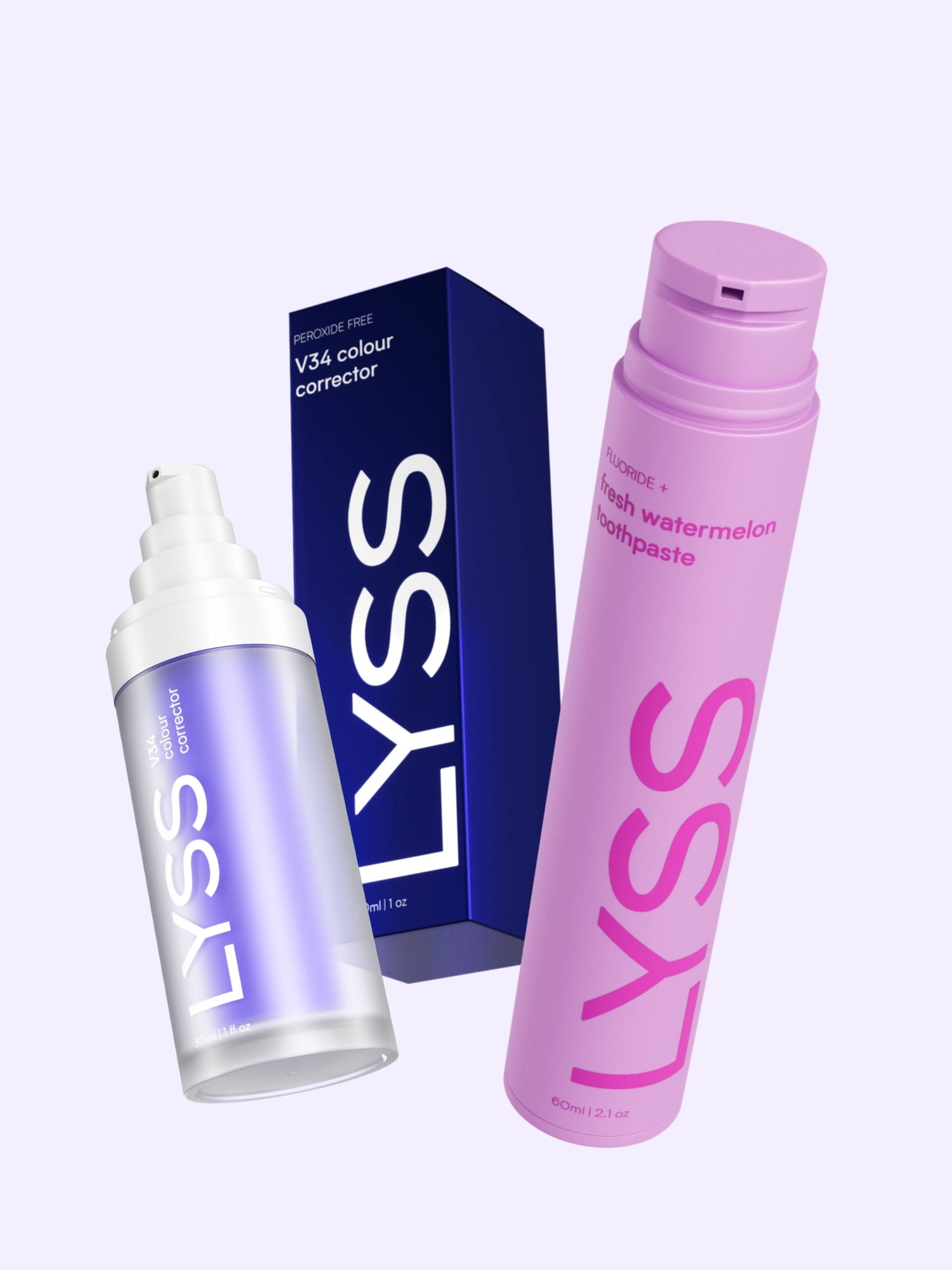 Zkombinujte naše dva bestsellery za výhodnou cenu - V34 korektor na bělení zubů a ochucenou zubní pastu LYSS s příchutí vodního melounu, jahody, hroznové žvýkačky, mango sorbetu, citronu & limetky. modré maliny nebo čerstvého liči.