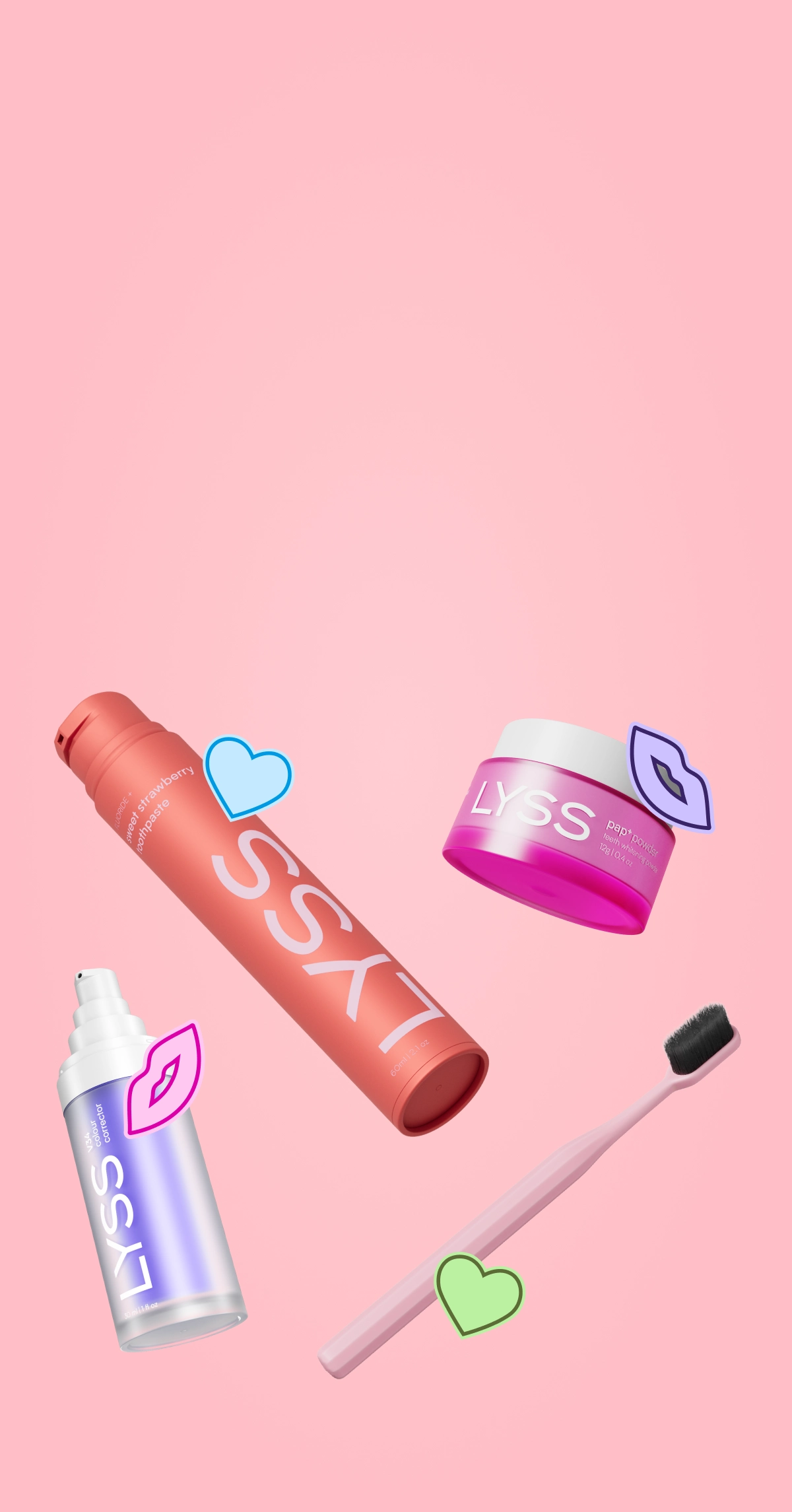 Zkombinujte naše dva bestsellery za výhodnou cenu - V34 korektor na bělení zubů a ochucenou zubní pastu LYSS s příchutí vodního melounu, jahody, hroznové žvýkačky, mango sorbetu, citronu & limetky. modré maliny nebo čerstvého liči.