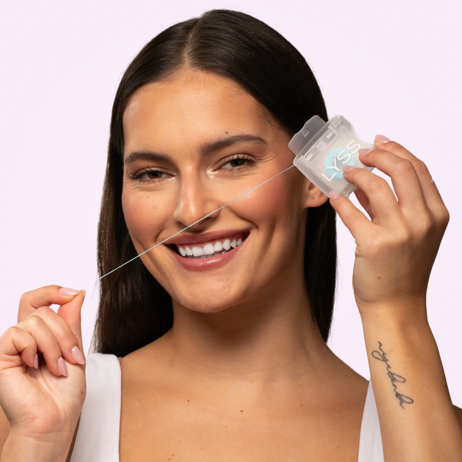 LYSS zubní nit je měkká a není abrazivní. Může odstranit měkký zubní plak a také i zubní kámen v případě, že se nenachází v zubu již delší dobu.